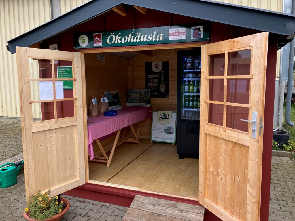 Ob auf Radtour oder Wanderung durchs Bamberger Land: In der liebevoll gestalteten Automatenhütte warten gekühlte Bio-Getränke, Bio-Biere, Snacks sowie saisonale Spezialitäten aus der Region. Betrieben wird das Ökohäusla vom Bioland-Hof Pfeufer.